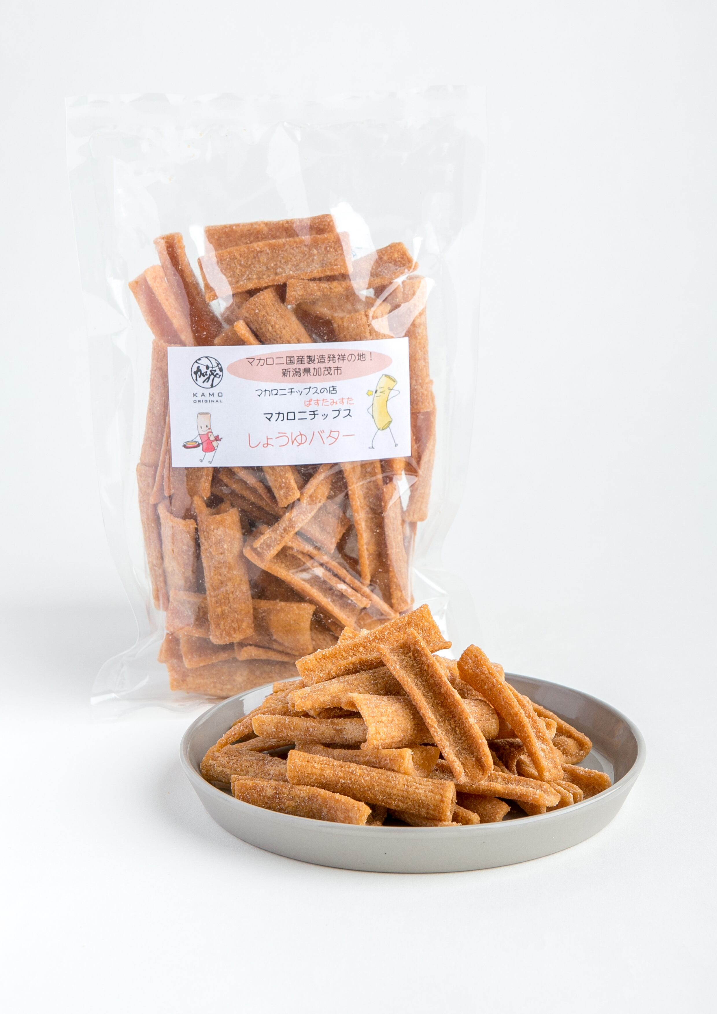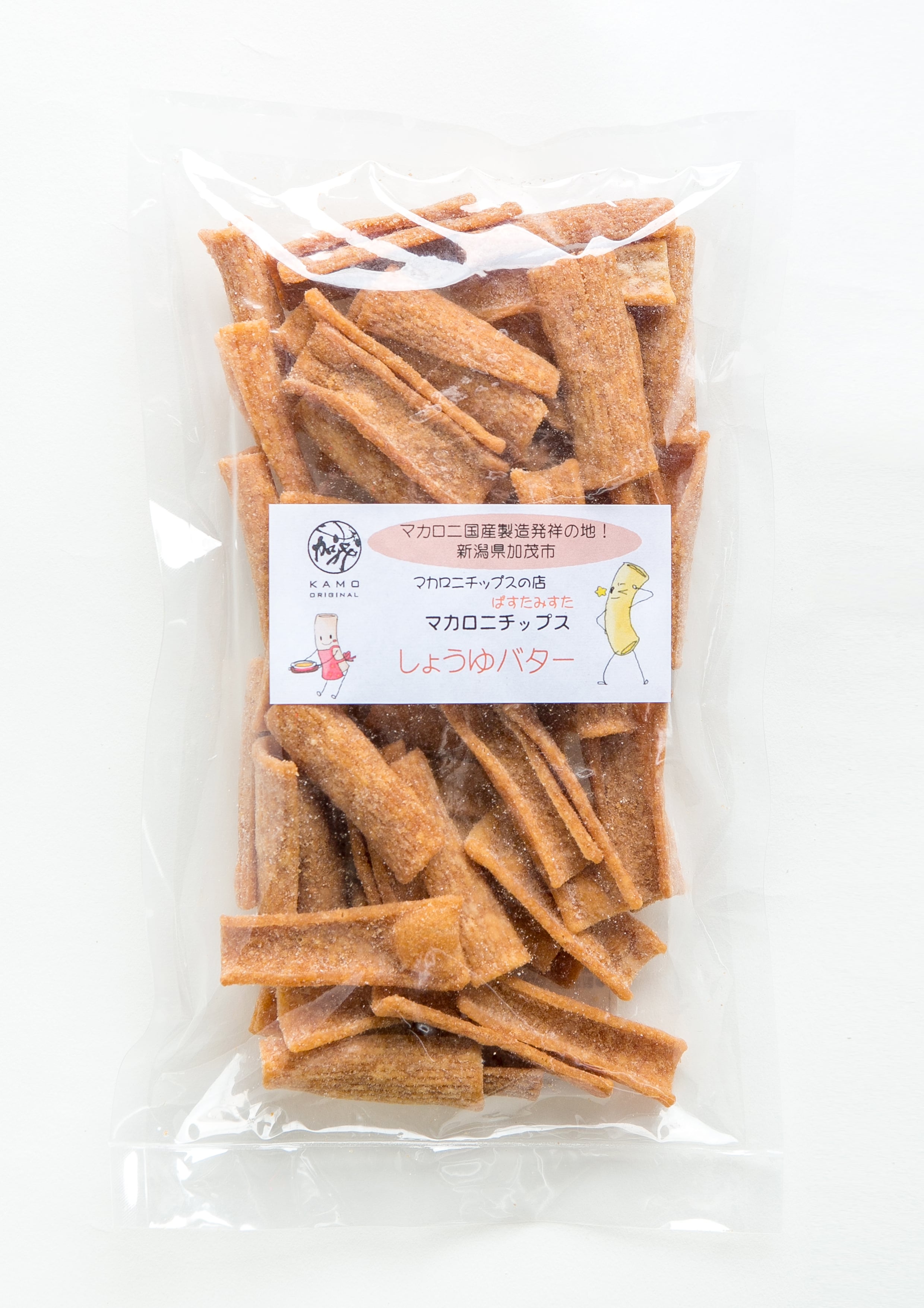 ぱすたみすたのマカロニチップスで一番人気のしょうゆバター味です。