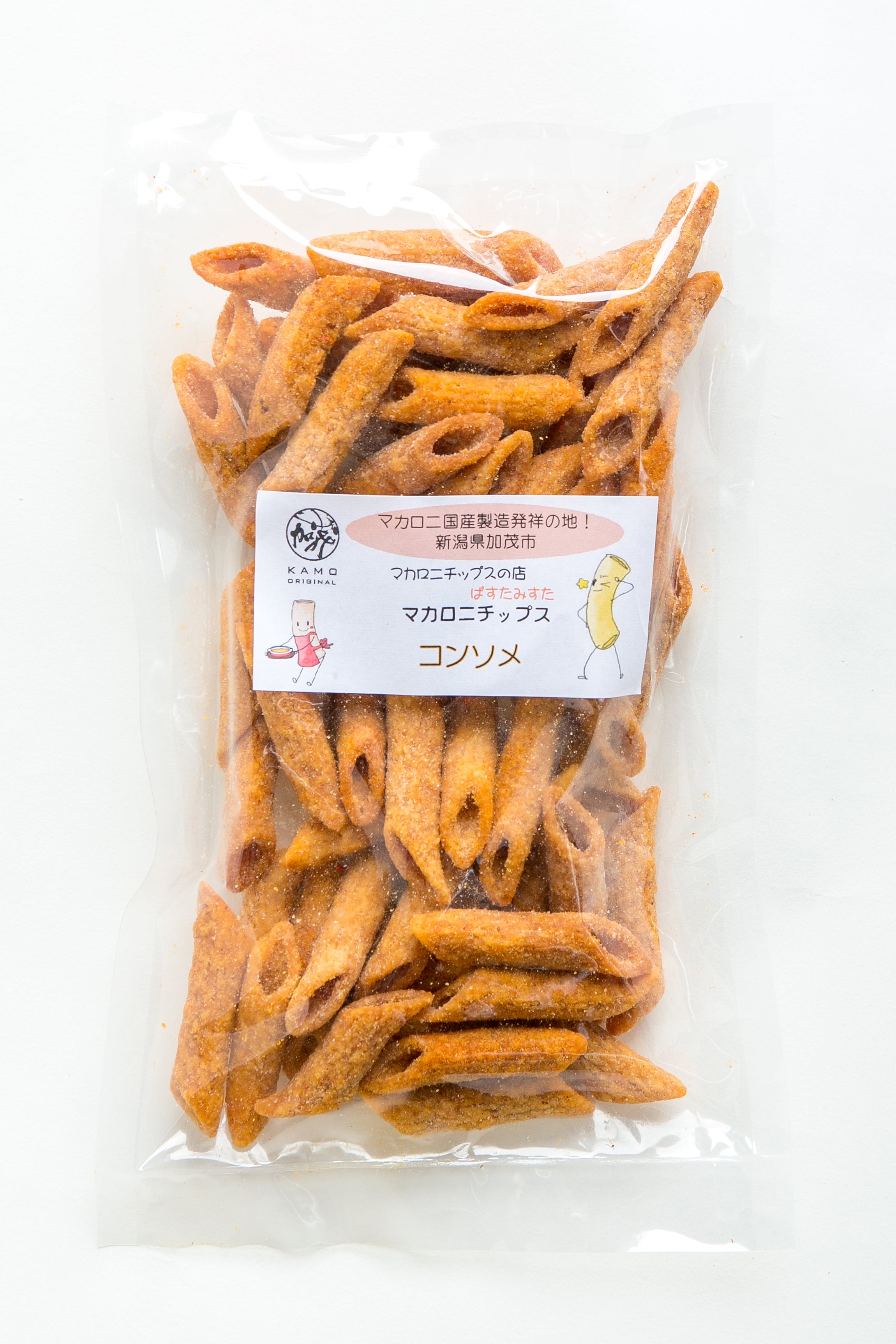 マカロニチップスとは新潟県加茂市がマカロニ製造国内発祥の地として、マカロニにちなんだ土産物品を作りたいという想いから生まれました。