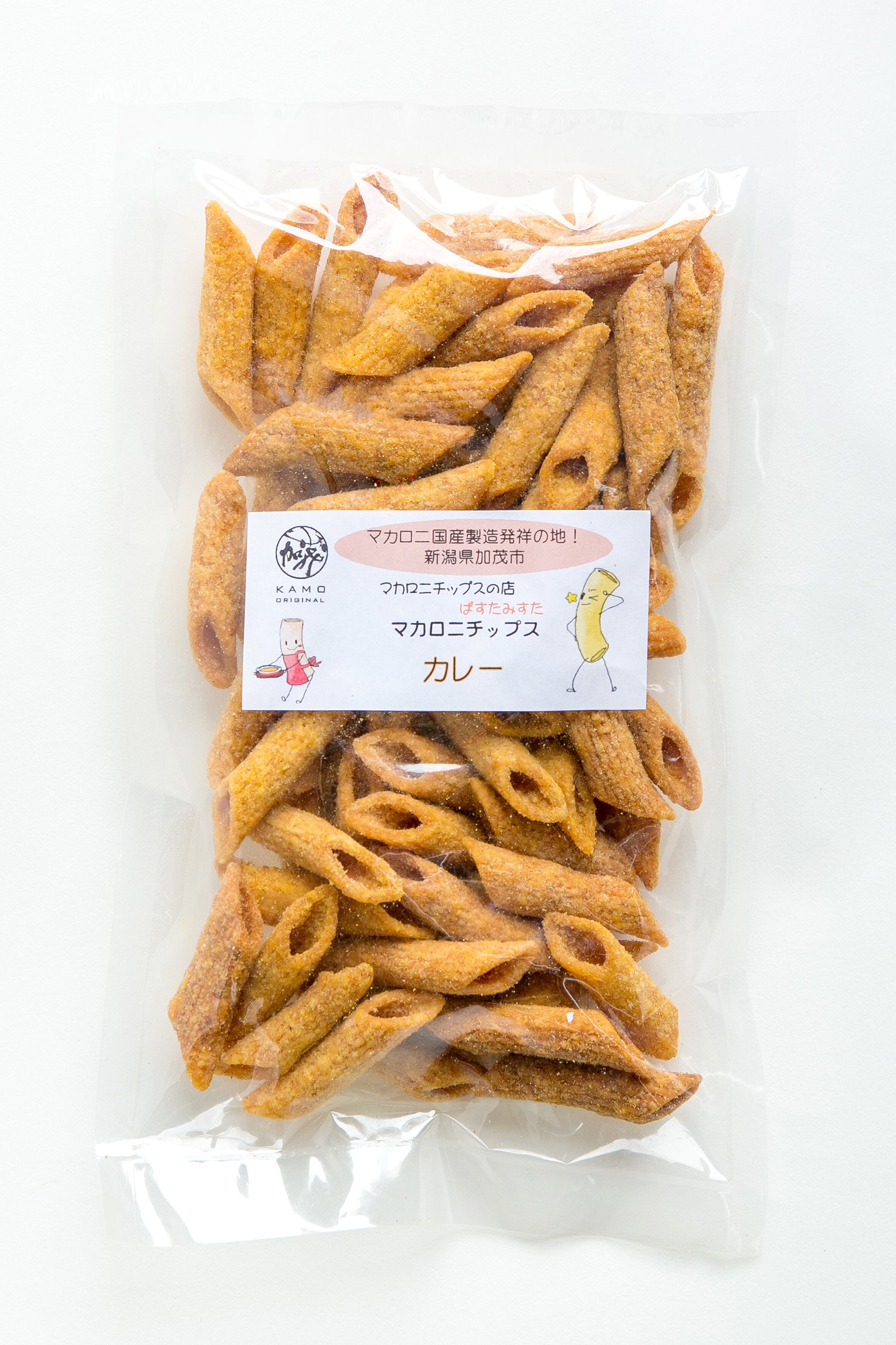 マカロニチップスとは新潟県加茂市がマカロニ製造国内発祥の地として、マカロニにちなんだ土産物品を作りたいという想いから生まれました。