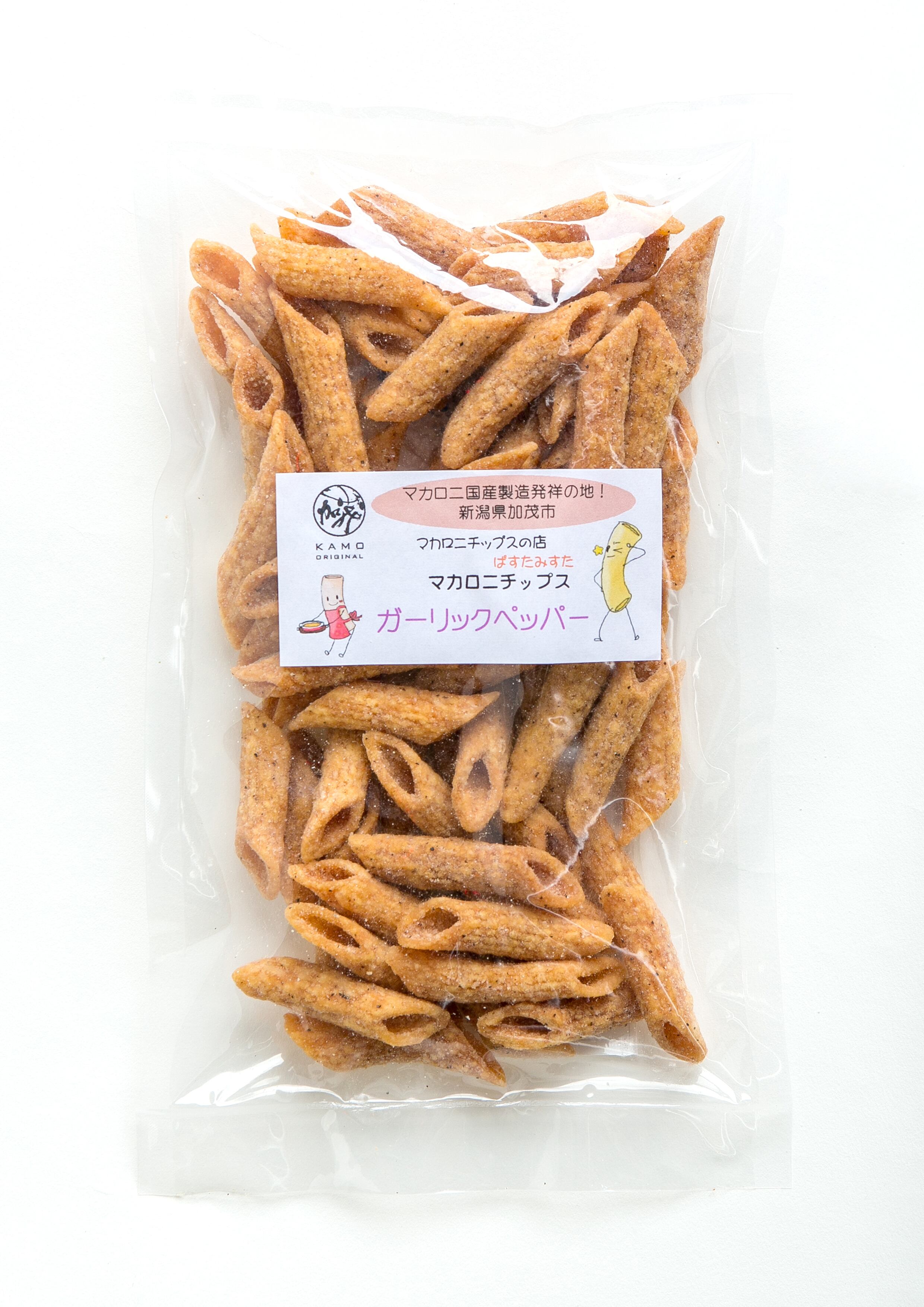 マカロニチップスとは新潟県加茂市がマカロニ製造国内発祥の地として、マカロニにちなんだ土産物品を作りたいという想いから生まれました。